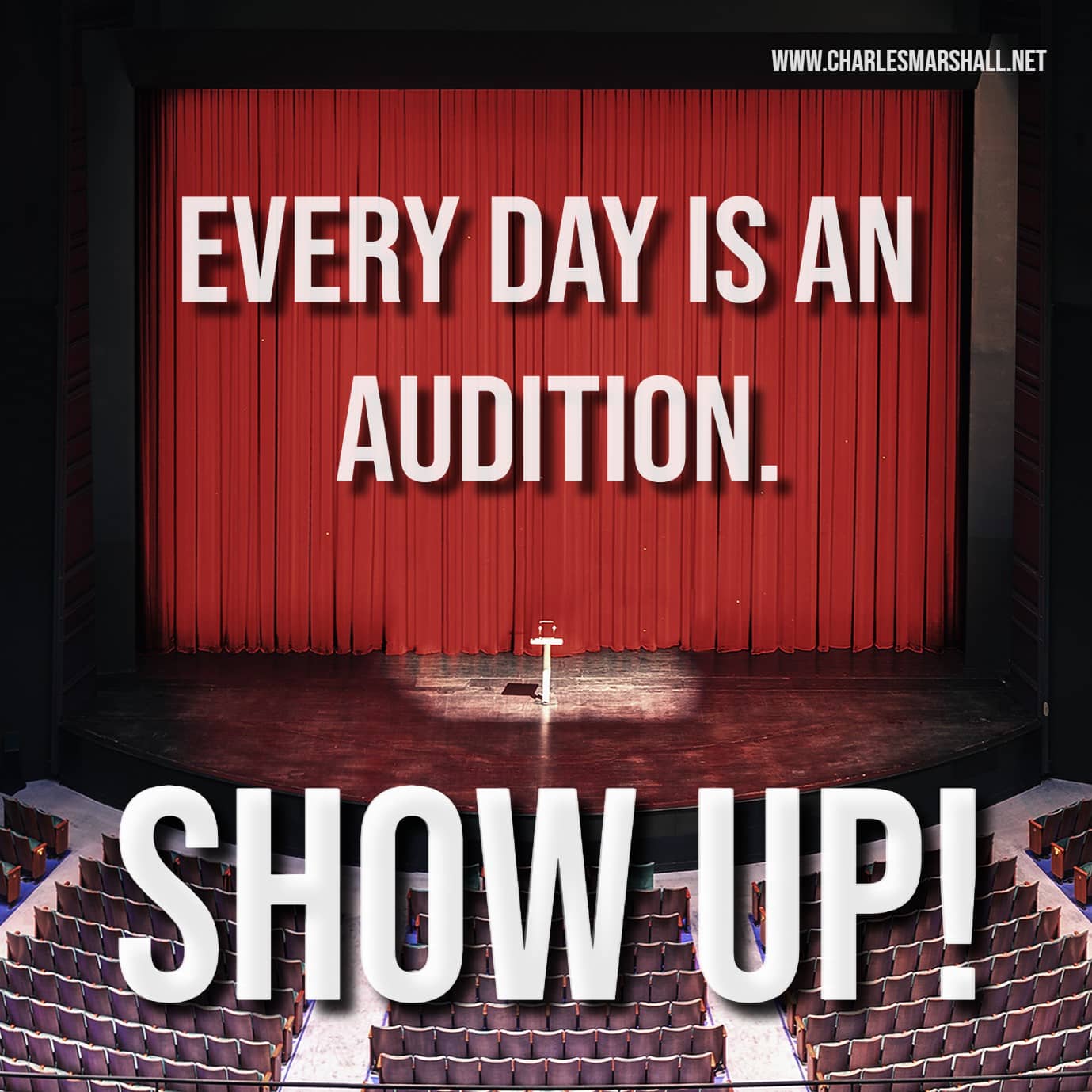 Every day is an audition By Charles Marshall on September 22, 2025 in Inspiration, Leadership, Motivation, motivational quotes Every day is an audition. Show up! © 2007 Charles Marshall Related